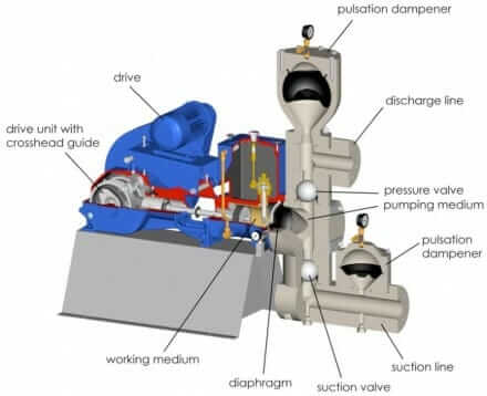 Emmerich excels in meeting difficult requirements specified by the customer with this system which combines the advantages of the piston pump and the diaphragm pump to pump abrasive and highly viscous media with high levels of solid particles: sludge of all kinds from the coal, clay and cement industries; dye slurry, latex, acids and alkalis from the chemical industry; and seasonings, mustard, jams in the food industry; plus additional areas including industrial and wastewater applications.